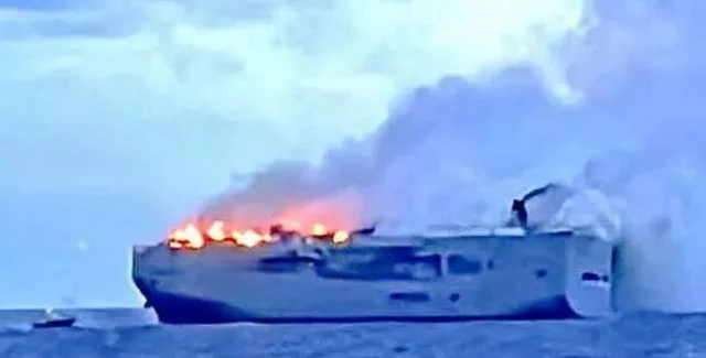 26 июля в 30 км к северу от голландского острова Амеланд на грузовом судне Fremantle Highway, который плыл под флагом Панамы, произошел масштабный пожар, об этом сообщает EuroNews.