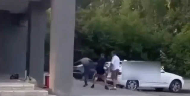 На кадрах неизвестный кричит "Погнали! За ЧВК "Вагнер"" и наносит двум другим мужчинам удары ногами. Один из пострадавших даже не пытается встать после нанесенной травмы.