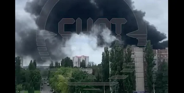 В Курчатове возле Курской АЭС масштабный пожар: горит многоэтажный дом (видео)