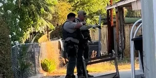Гуардино вызвала по поводу проникновения незнакомца в свой дом полицию. На обнародованных кадрах видно, как правоохранители с оружием уговаривают мужчину вылезти из-под дома. Когда злоумышленник покинул свое укрытие, его арестовали.