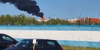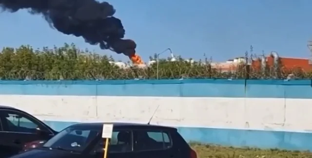 Жители заметили столб дыма и огонь на территории нефтехимического предприятия. Предприятие производит пластик для нужд российской экономики и до сих пор не находится под санкциями.