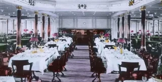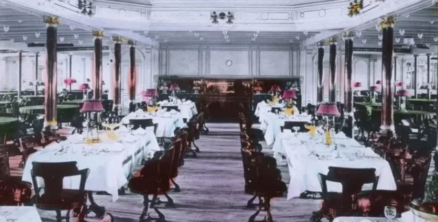 Пассажиры могли попробовать лосося с соусом "Голландез", мясо весеннего ягненка с мятным соусом, пудинг "Виктория", устрицы и другие изысканные блюда.