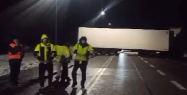 Украинские водители сообщают, что их не пропускают под предлогом, что фура, по которой перегорожен путь, сломалась.