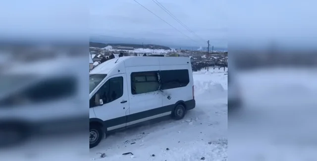 Одна "снежка", которая была черной и похожей на камень, врезалась в окно микроавтобуса и разбила его. Удар не мог повредить лицам в кабине — за стеклом было видно защитную фанеру.