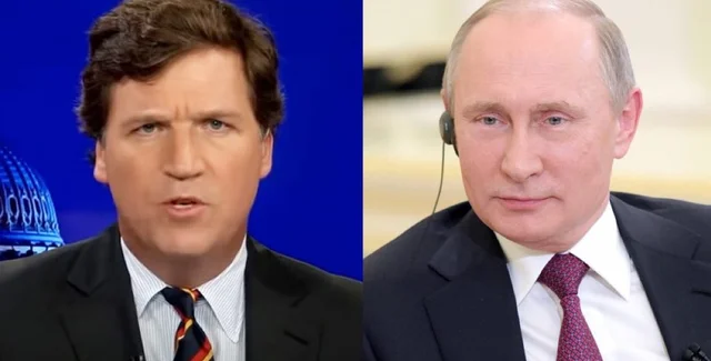В своей программе на телеканале Fox News Карлсон неоднократно высказывался в поддержку Владимира Путина и выражал сомнения в "российской угрозе". Он также критиковал администрацию президента Байдена за помощь Киеву. Российские пропагандистские СМИ часто цитируют слова американского журналиста.