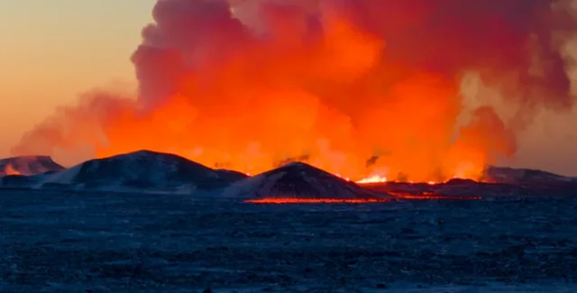 Вершина извержения исландского вулкана специалисты зафиксировали еще в прошлом году. Около 4 тысяч жителей местного рыбацкого городка Гриндавик были эвакуированы. Затем сейсмическая активность на некоторое время приостановилась, пока не возродилась с новой силой в начале января этого года.