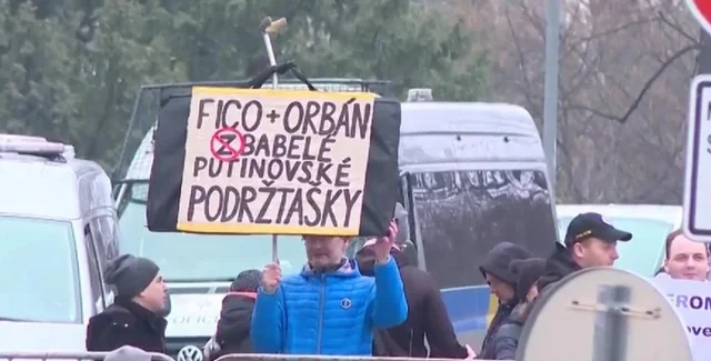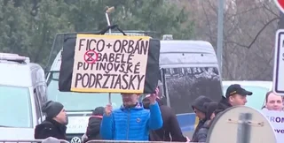 Вдоль маршрута, по которому двигались Роберт Фицо и Виктор Орбан, стояли митингующие с плакатами, на которых были выражены такие лозунги, как "Фицо, вернись домой в Россию", "Фицо и Орбан – приспешники Путина" и другие подобные высказывания.