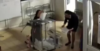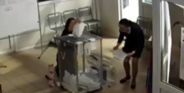 В России женщина на коленях пыталась незаметно проползти в зал, чтобы забросить бюллетени в урну для голосования. Видео опубликовали в сервисе микроблогов Х.