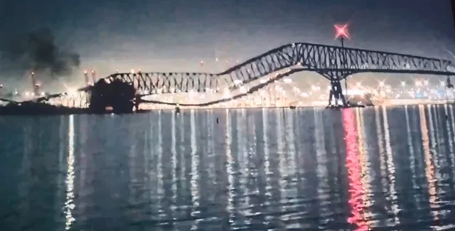 Происшествие произошло 26 марта в 01:28 по EDT (по североамериканскому восточному времени, по Киеву — 07:28). Журналисты издания сообщили, что обвалился не весь мост, а часть — какая именно длина поврежденного участка пока неизвестна. Корабль, врезавшись в опору, загорелся и утонул. Тем временем в воде оказались несколько машин — предварительно известно о семи возможных пострадавших. Транспортная служба Мэриленда заявила, что мост перекрыт. Два местных чиновника, мэр Балтимора Брэндон М. Скотт и исполнительный директор округа Джонни Ольшевски, заверили, что на место инцидента прибыли соответствующие службы — продолжаются спасательные работы.