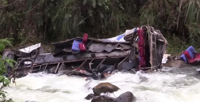 Автобус направлялся в город Сорочуко в воскресенье вечером. Транспортное средство перевернулось и упало со склона в реку.