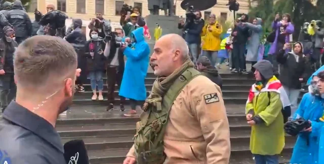 На митинге в Тбилиси избили добровольца ВСУ, который помогал освобождать Бучу (видео)