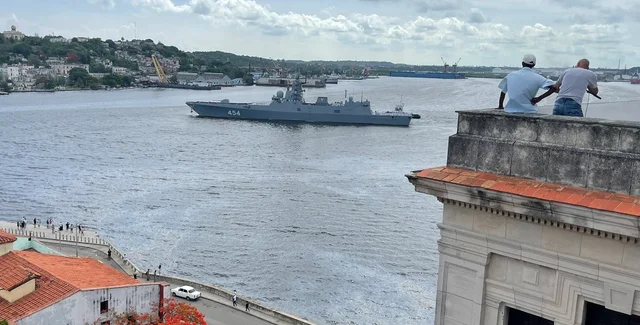 Когда "Горшков" прибыл на Кубу 13 июня, он произвел оглушительный салют из 21 выстрела. Кубинцы ответили артиллерийским огнем из крепости XVIII века с видом на гавань, построенной испанцами для защиты города от пиратов. Вместе с фрегатом прибыл спасательный буксир, топливозаправщик и внушительная атомная подводная лодка "Казань".