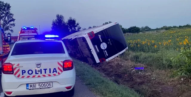 Рано утром 22 июня недалеко от села Пуфешти области Вранча в Румынии туристический автобус с 59 пассажирами съехал с трассы и перевернулся. Об этом сообщает сайт Stiripesurse.