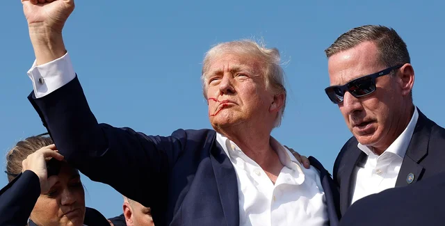 Сам Трамп говорит, что он был бы мертв, если бы не повернул голову, чтобы прочитать таблицу о нелегальных иммигрантах. В этот момент выстрел, который должен был стать смертельным, вместо этого оторвал ему небольшой кусочек уха и брызнул кровью на лоб и щеку.