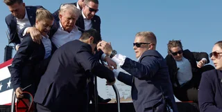 Фото, сделанное после покушения на убийство Дональда Трампа ("россиянка" поддерживает политика слева)