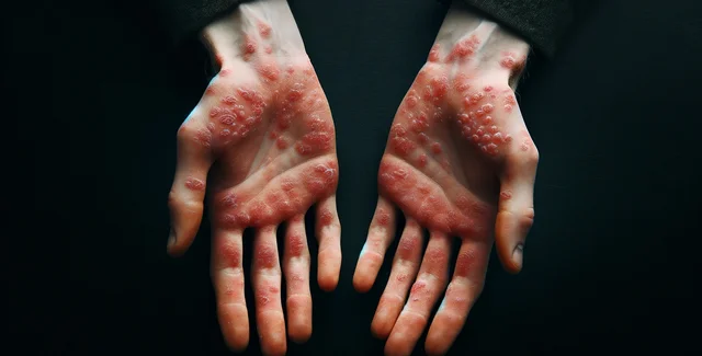 • сыпь на руках, ногах, груди, рту или половых органах.