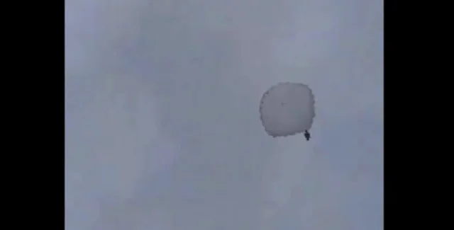 На видео, которые сняли жители Чехла, видно неудачные прыжки польских десантников.