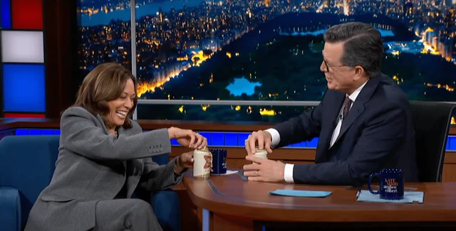 Ведущий отметил, что выборы "играют на эмоциях", но он один из тех, кому просто хотелось бы кого-то, с кем можно выпить пива. Тогда он предложил реализовать идею гостьи, чтобы показать людям, о чем идет речь. Харрис утвердительно кивнула, и ведущий вытащил пару банок пива.