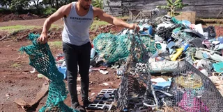 Кина Паоа Каннегиссер сортирует пластик на берегу