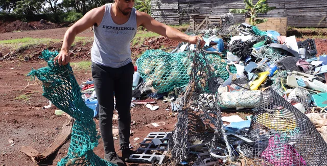 Рабочие на городской свалке перемалывают пластик в бусины, из которых делают разноцветные столешницы и предметы домашнего обихода. Один из них построил музыкальную школу для острова, используя 2500 шин, 40 000 стеклянных бутылок и 40 000 алюминиевых банок.