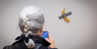 В данном случае покупатель даже не получил оригинальный банан. Вместо этого он получил лишь "сертификат подлинности", который дает им разрешение воссоздать эту странную инсталляцию — или, по сути, купить собственный банан, прикрепить его скотчем к стене и назвать "Комедиантом".
