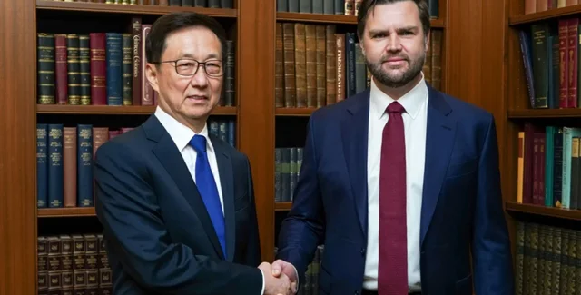 В заявлении переходной команды Трампа-Вэнса в воскресенье говорится, что на встрече Хань и Вэнс обсудили "ряд тем, включая фентанил, балансирование торговли и региональную стабильность".