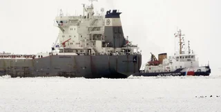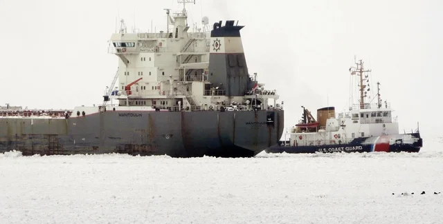 Канадское судно Manitoulin длиной 202 метра с 17 людьми на борту застряло во льдах озера Эри в среду, 22 января, после того, как выгрузило пшеницу в Буффало, штат Нью-Йорк, и направлялось обратно в Канаду.