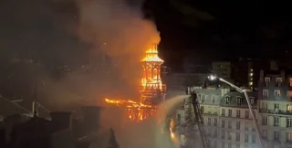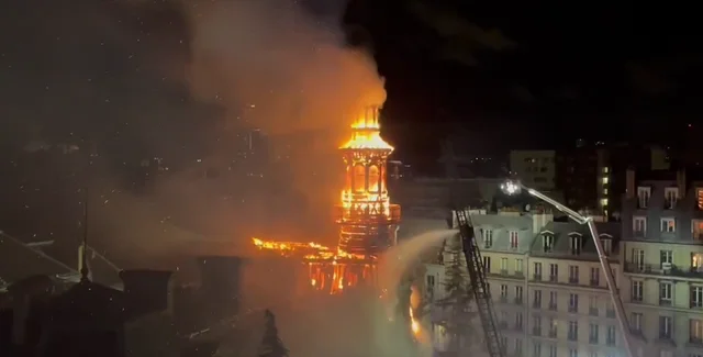 В Париже из-за масштабного пожара может обвалиться колокольня ратуши 1876 года | Фото: Скрин видео
