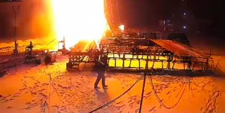 "Когда поднимали электроцентробежный насос, произошел выброс газа, который сразу вспыхнул", — передали журналисты.