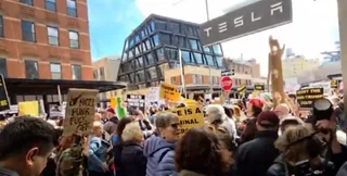После скандальной встречи в Белом доме, протестующие отправились выразить свое недовольство соратнику Трампа Илону Маску.