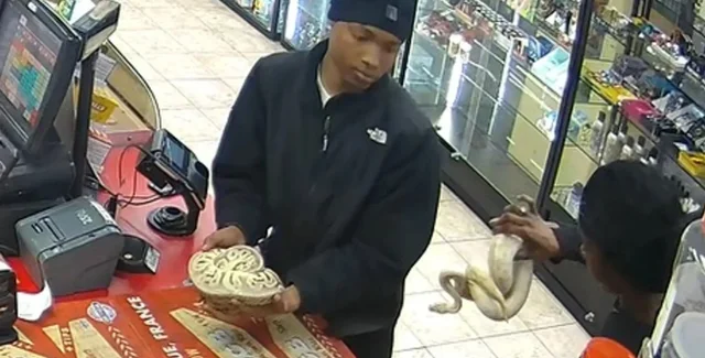 "Змея — это оружие": в США ограбили заправку, угрожая кассиру двумя живыми питонами (фото)