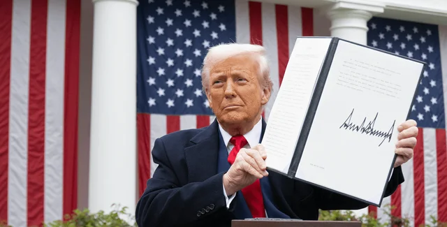 Дональд Трамп с подписанным актом о вводе повышенных пошлин на товары из Китая | Фото: Getty Images