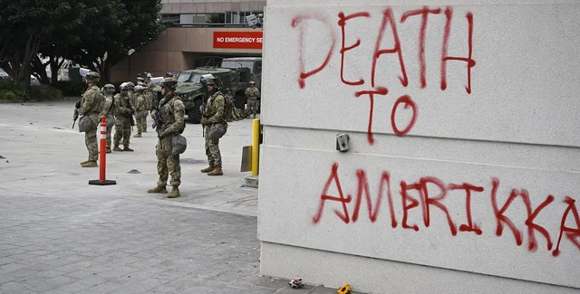 Национальная гвардия — резервная сила вооруженных сил США, обычно действующая на уровне штатов. В данном случае это Калифорнийская национальная гвардия в Лос-Анджелесе.