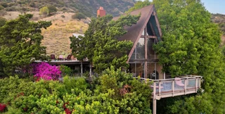 Дом в форме буквы "А" является нетипичным для Лос-Анджелеса. Он облицован деревом внутри и снаружи, создавая атмосферу "домика в лесу". Также на территории есть спа-джакузи.