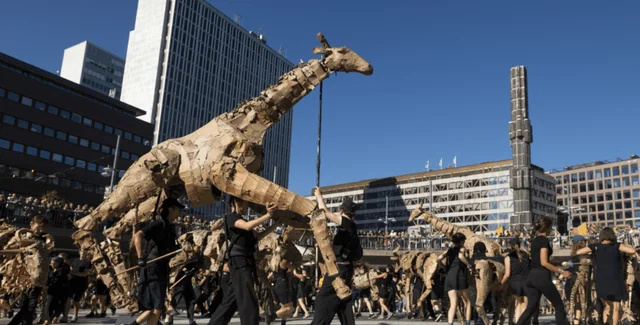 В рамках проекта The Herds («Стада») были изготовлены куклы африканских зверей в натуральную величину, передает Euronews. Ими управляли люди-проводники, а вся процессия должна была показать проблему изменения климата – мол, люди и животные вынуждены покидать свои привычные места обитания, спасаясь от экологической катастрофы.