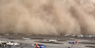 Мощный шторм поднял огромную стену пыли, которая прокатилась по городу Финикс в штате Аризона, затмив небо, ослепив водителей, выведя из строя электроснабжение и приостановив рейсы в одном из самых загруженных аэропортов США, пишет ABC News.