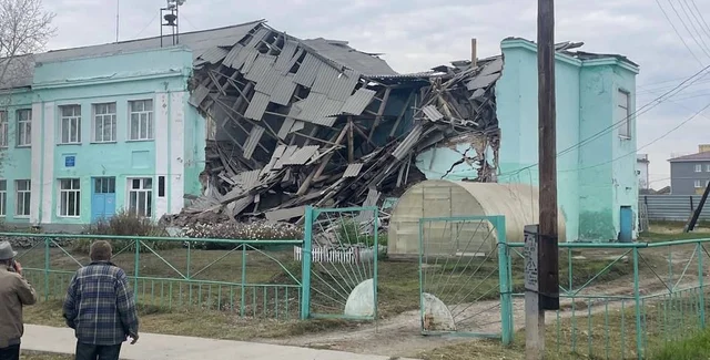 "Это школа в городе Татарске Новосибирской области. Нет, по ней не били беспилотники или ракеты. Там даже пожара не было. Она просто рухнула, и все", — написал он.