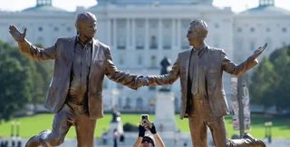 За руку с Эпштейном: перед Капитолием появилась новая статуя Трампа (видео)