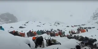 Пеший поход на самую высокую гору мира в Тибете стал для сотен туристов страшным испытанием. Метель замела лагеря и проходы, заблокировав путешественников на тибетской стороне Эвереста.