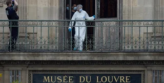Криминологи на балконе Лувра у разбитого окна | Фото: Getty Images