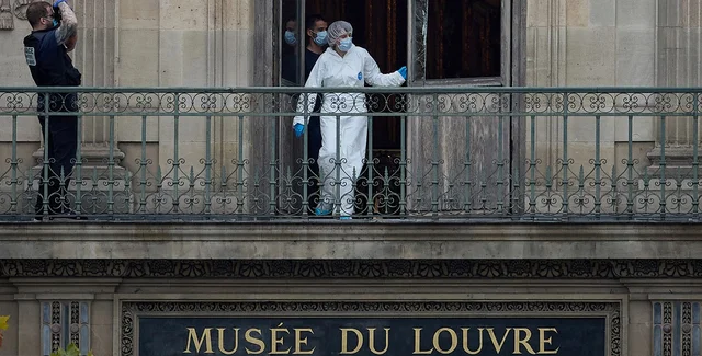 В 9:37 утра срабатывает сигнализация. Преступники вылезают через окно. Они забираются на подъемник и спускаются. Четверо человек скрываются на скутерах под пристальным вниманием камер видеонаблюдения после поспешного ограбления, имеющего все признаки организованной преступности, в очень популярном туристическом районе Парижа. В 11:37 15 тысяч посетителей Лувра эвакуировали, а сам музей закрыли.