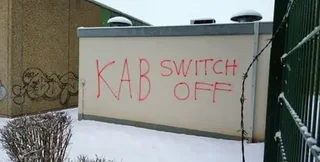 На стене подстанции также написали KAB, что означает название группировки Kommando Angry Birds, а также надпись "Switch off" ("выключи" — ред.)