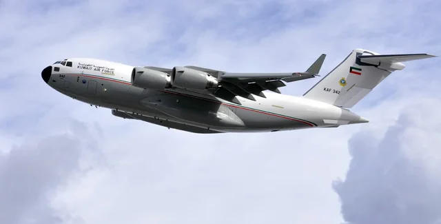 Военно-транспортный самолёт Кувейта Boeing C-17 Globemaster III регулярно выполняет рейсы между странами Персидского залива и польским Жешувом, который является ключевым логистическим хабом для Украины.