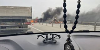 Пожар на дороге в Ростовской области России | Фото: 112