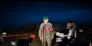 Майор Гинтаутас Чунис у озера Лависас в которое рухнул "Шахед" | Фото: LRT