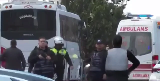 На видео видно, как полицейские достают оружие и прячутся в укрытие, пока не менее 10 минут раздавались выстрелы. Другие кадры показывают, как нападающий движется среди припаркованных автобусов полиции и службы безопасности и в течение нескольких минут стреляет из автоматической винтовки и пистолета. В результате этого инцидента, который произошел непосредственно возле башни, где расположено консульство Израиля в финансовом районе Стамбула, пострадали двое полицейских.