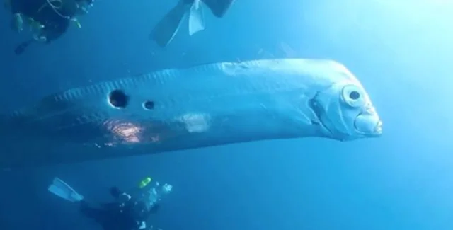 Обитатель морских глубин имеет название Сельдяной король и считается самой крупной костистой рыбой. Гигант получил прозвище "рыба-землетрясение", поскольку считается, что он поднимается с большой глубины перед или после землетрясения.