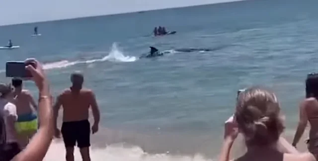 Туристы в панике: на пляже Испании гигантские акулы подплыли к берегу, полному людей (видео)