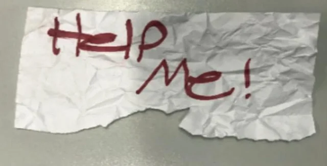 Утром 9 июля Саблан поехал в прачечную, чтобы постирать их одежду. Девочка написала на листке бумаги "Help Me!" и держала его в руках, пытаясь привлечь внимание прохожих.