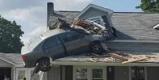 В США автомобиль взлетел в воздух и врезался в спальню второго этажа дома в Пенсильвании, где и остался висеть в воскресенье днем до приезда спасателей. Об этом пишет The Sun.